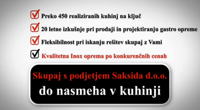 Podjetje Saksida d.o.o. odlikuje njegova fleksibilnost in pripravljenost poiskati skupne rešitve glede na želje, ki jih pri nabavi gostinske opreme izrazijo naše stranke. V 20-ih letih poslovanja smo si nabrali številne izkušnje. Dobro poznamo trg in naše ciljne skupine ter njihove potrebe. Imamo odlične poslovne odnose s tujimi in domačimi partnerji, kar nam omogoča dobavo visoko kvalitetnih strojev in ažurno nudenje poprodajnih storitev. V našem interesu je Vaše največje zadovoljstvo.